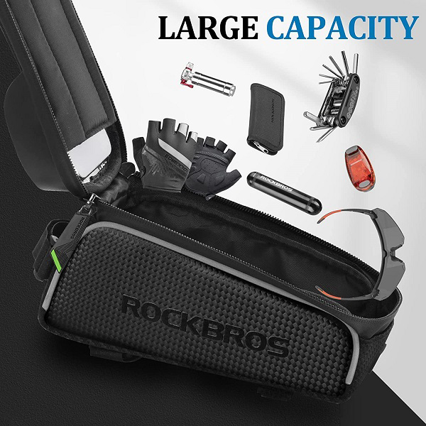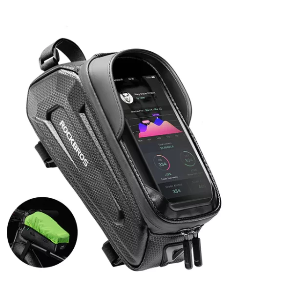 Vores telefonetui fungerer også som en almindelig cykeltaske. Den har et rumligt rum, der sikkert opbevarer dine nødvendigheder som nøgler, tegnebog, dokumenter og andet udstyr. Den er nem at åbne og lukke på farten med dobbelt lynlåse. For dobbelt beskyttelse af dine ting kan du bruge den ekstra regnslag, som sikrer, at vand ikke trænger ind i tasken og beskytter dine ejendele mod regndråber og fugt.