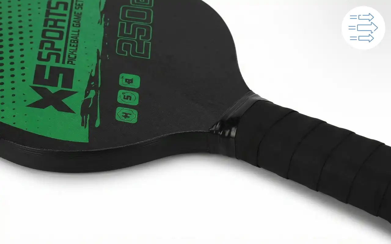 Købte dette paddlesæt til weekendspil med naboerne. Let, behageligt greb, og karbonoverfladen hjælper mig virkelig med at placere bolden, hvor jeg vil.