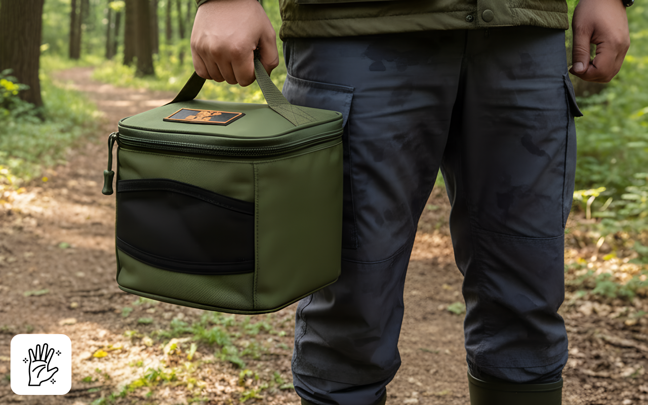 Elsker hvor behageligt håndtaget er at bære. Nu er jeg ikke længere bange for at tabe mit udstyr på vej til søen i år!