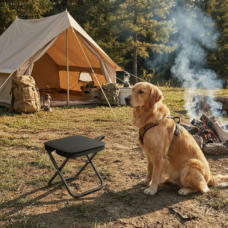 Camping er bedre med dette foldesæde. Fylder intet, og holder endda til min store fætter. Føles meget sikkert at sidde på.