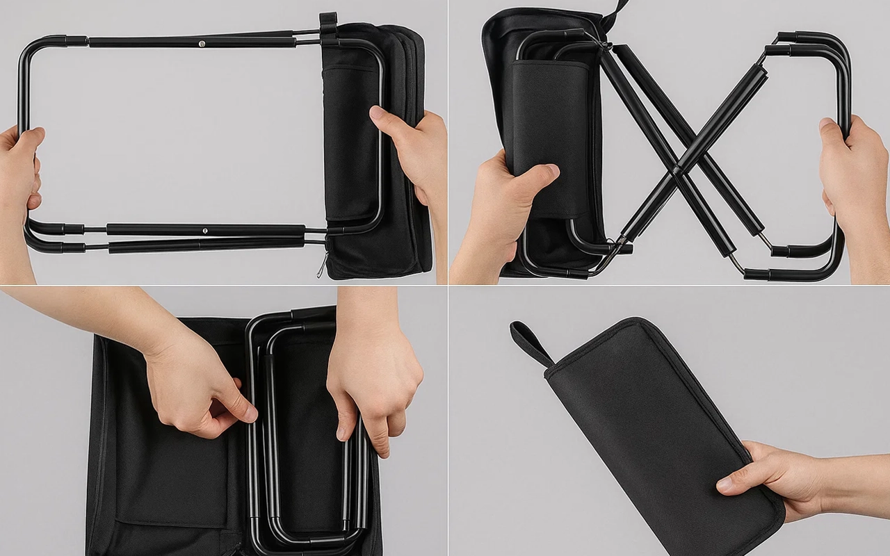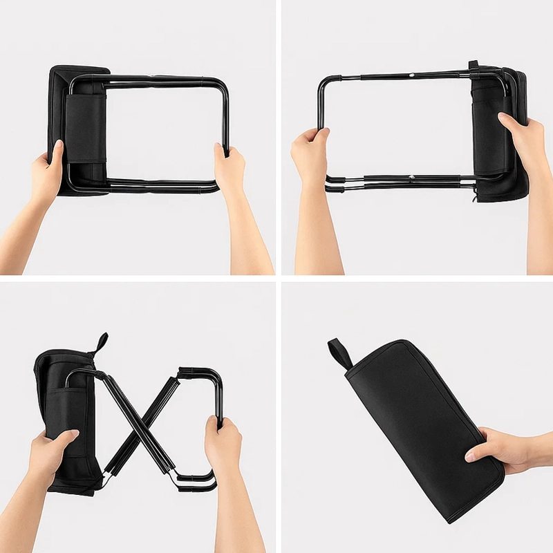 Aldrig mere at stå i timevis på nogen tur. Threo-skammelen kan foldes så lille, at den let passer i tasker. Ingen værktøj er nødvendige, og opsætningen tager under ti sekunder. Nyd naturen, mens du altid har et pålideligt sted at hvile.