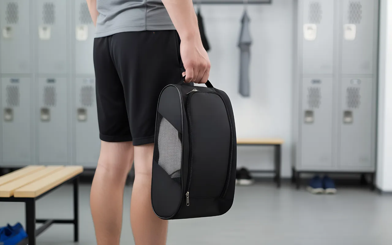 Det kompakte design lader dig bære træningssko uden ekstra volumen eller ubehag. Håndtaget gør det hurtigt og nemt at gribe dine sko før træning.