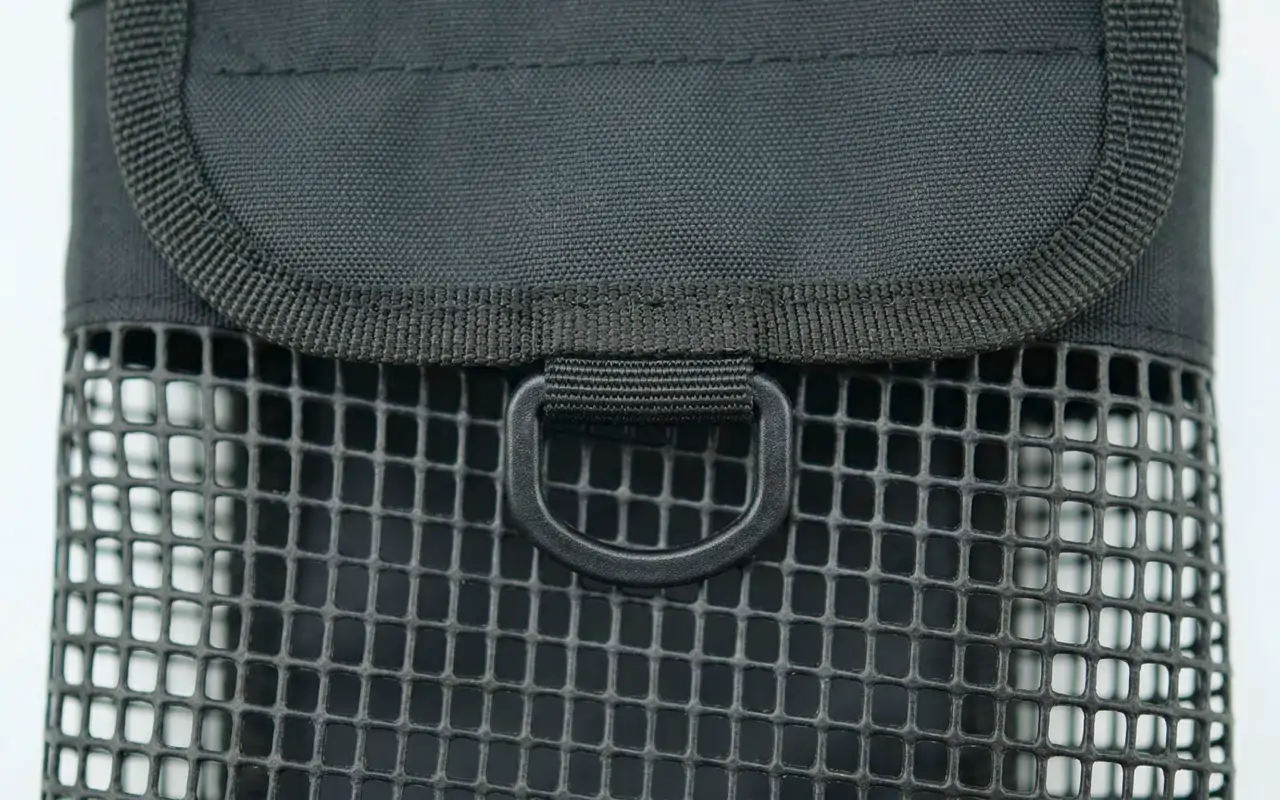 Jeg er instruktør og opbevarer ekstra snorkler og klips i denne netpose. Den hænger på mit bælte, føles aldrig klodset og dræner helt mellem elevdyk.