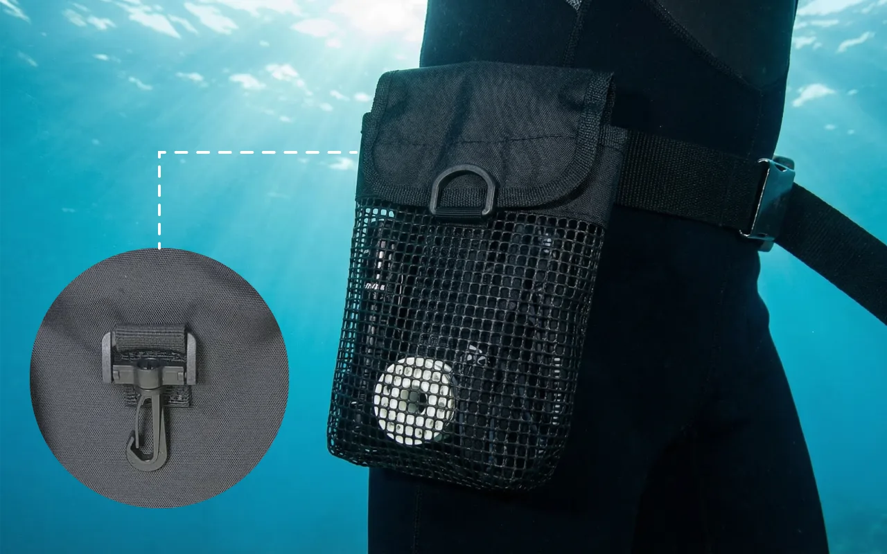 Vandet løber let ud gennem nettet og holder indholdet tørt. Du behøver ikke bekymre dig om gennemblødt udstyr efter dykning.