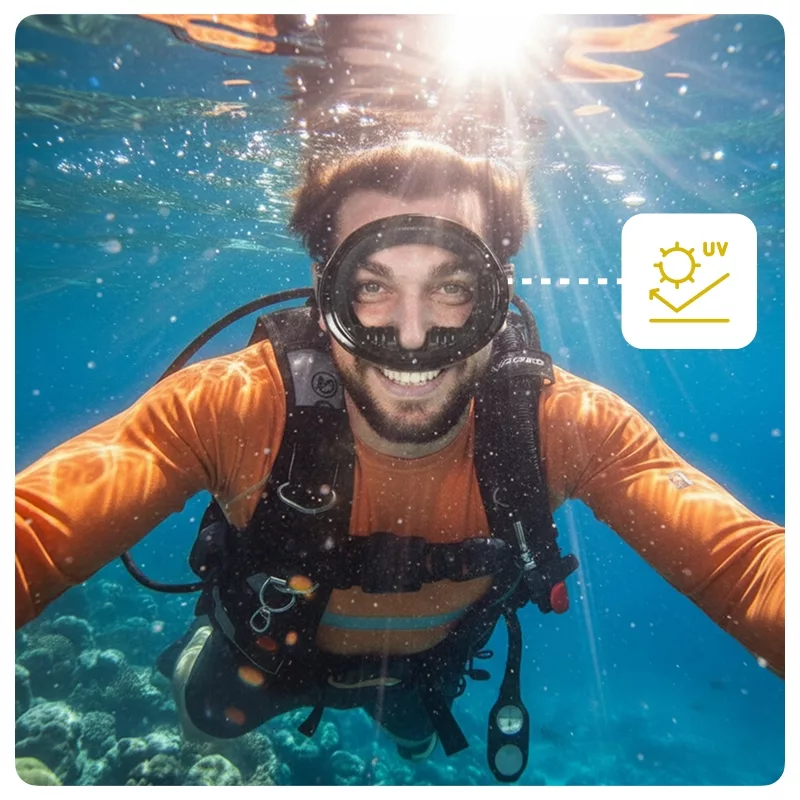 Endelig kan jeg svømme under vandet uden at bekymre mig om lækager! Linsen forbliver altid klar, let at rengøre, blød mod huden.