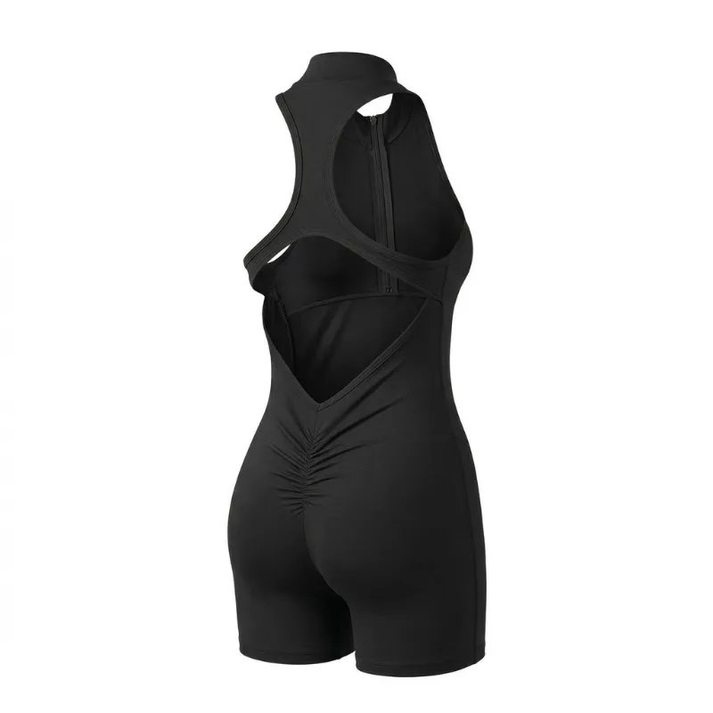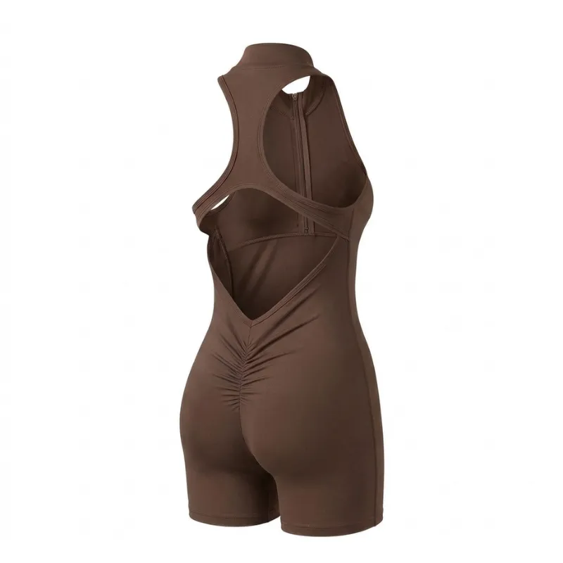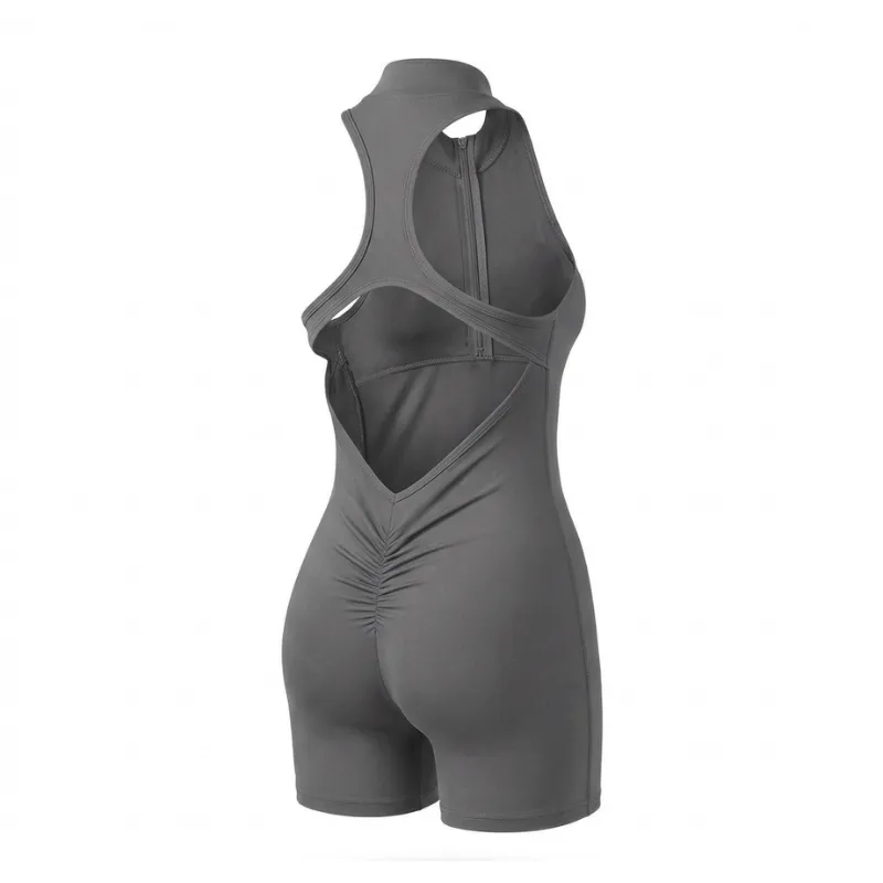 Købte denne jumpsuit til hot yoga, og jeg er besat af den. Den omfavner alt pænt, tørrer hurtigt, og lynlåsen gør det supernemt at skifte efter timen.