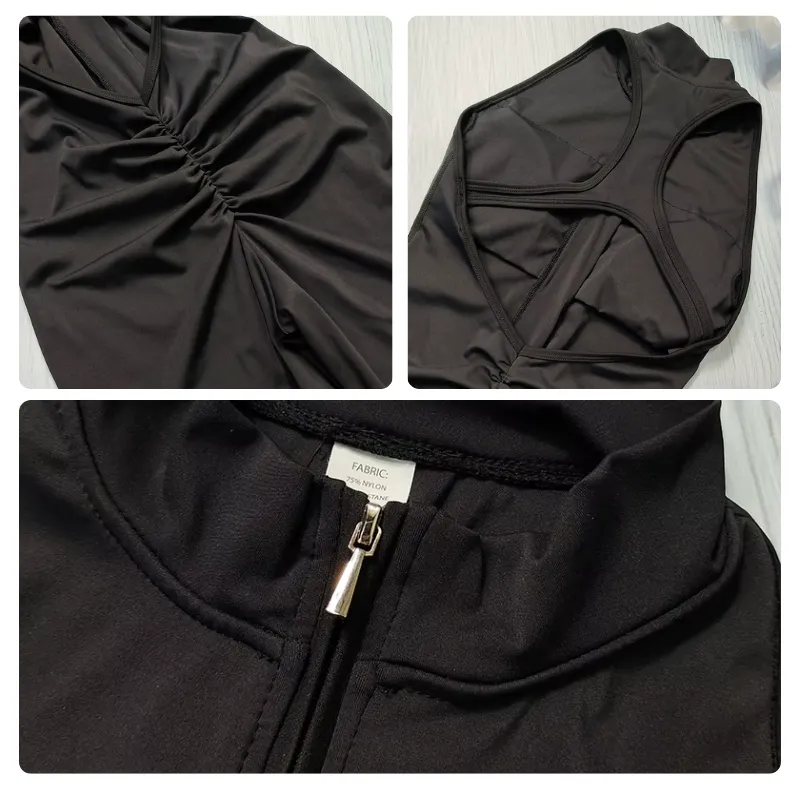 Jeg har den på under en oversized trøje i fitness. Den holder mig kølig, fremhæver mine former, og lynlåsen lader mig selv styre, hvor åben den skal være.