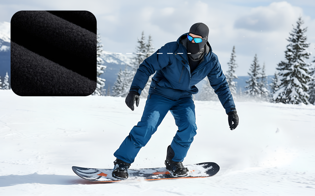 Kationisk fleece danner en stærk barriere mod barske vindstød. Din hud forbliver beskyttet og fri for ubehag.