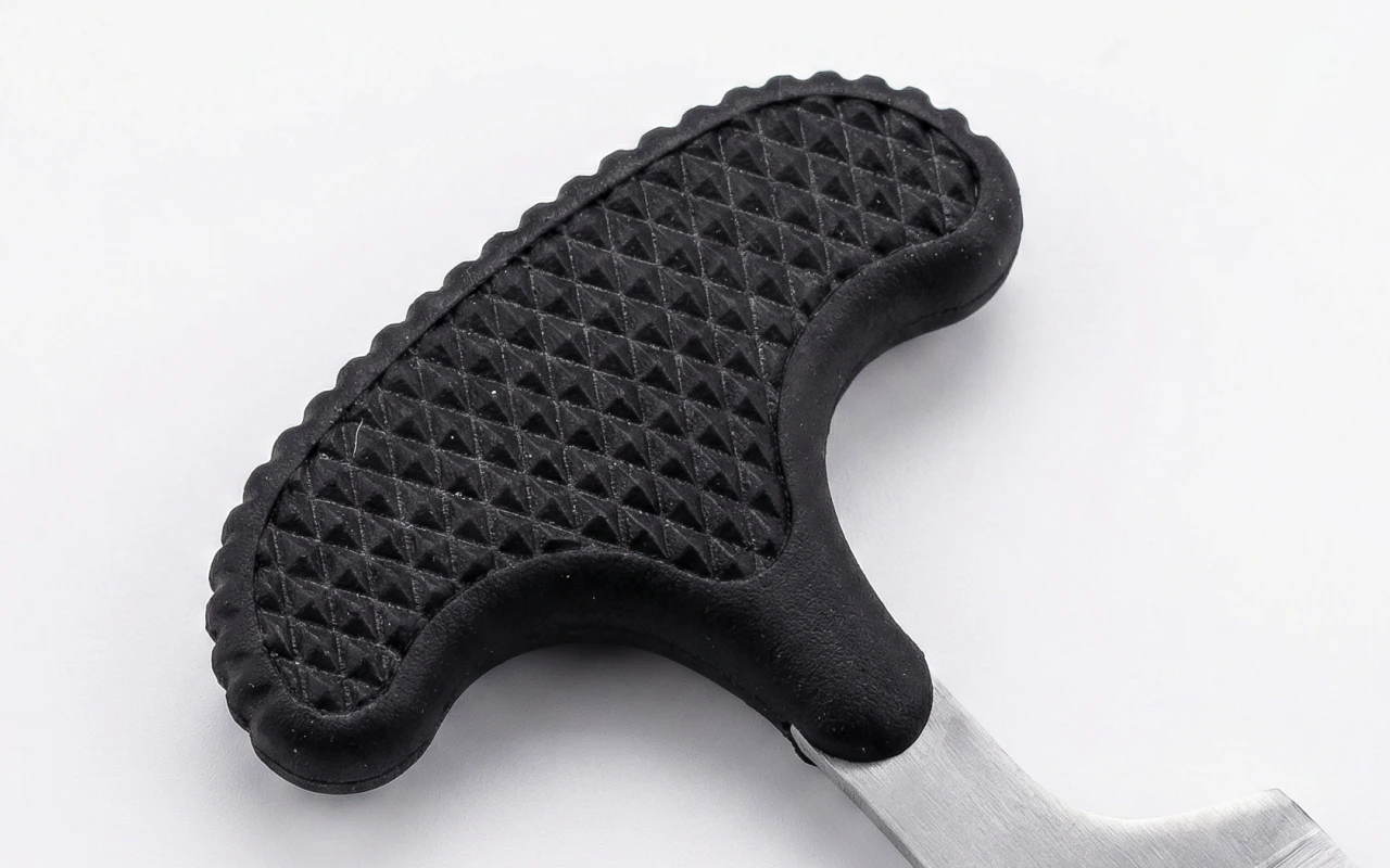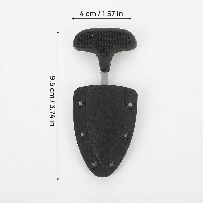 Den strukturerede grebflade forhindrer, at hånden glider på kolde, regnfulde aftener. Den robuste skede dækker de skarpe stålklinger mellem krævende udendørsopgaver.
