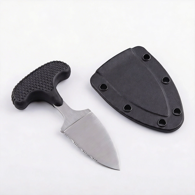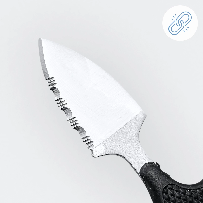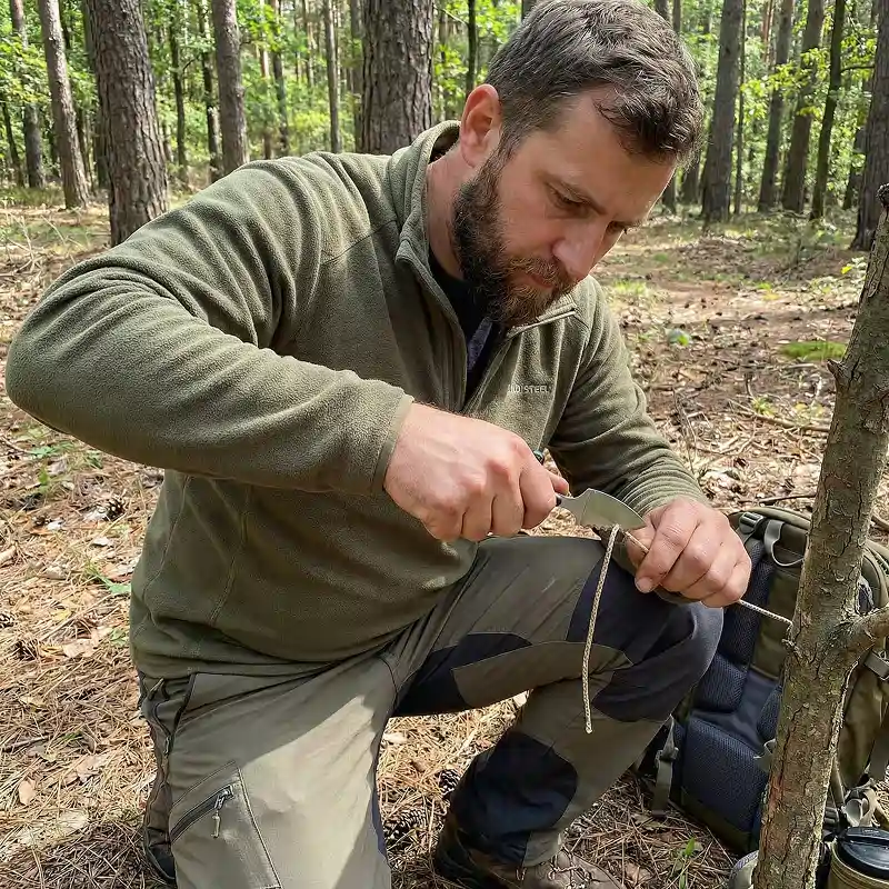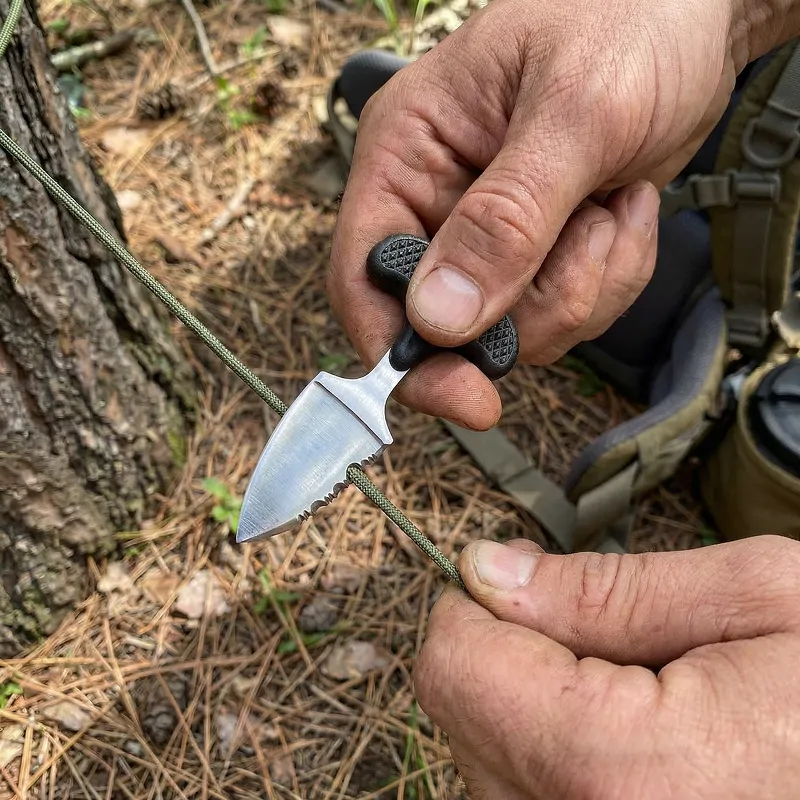 Jeg har denne lejrkniv i min bil til vandreture med min mand. Den er hurtig at trække, skærer faldskærmsline rent, og grebet glider aldrig, selv med svedige hænder.