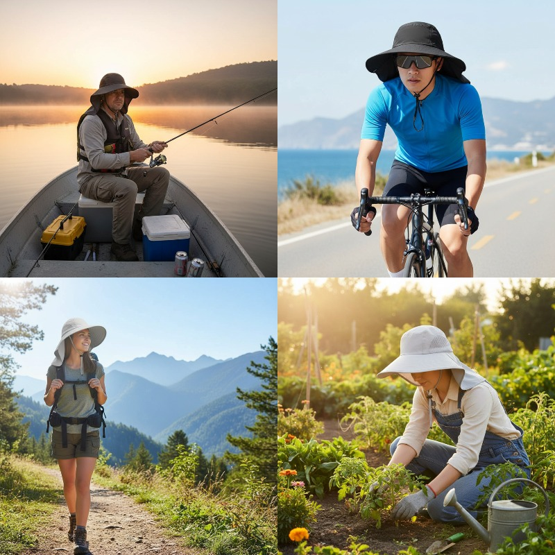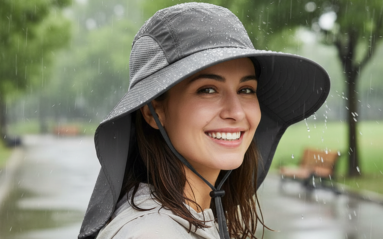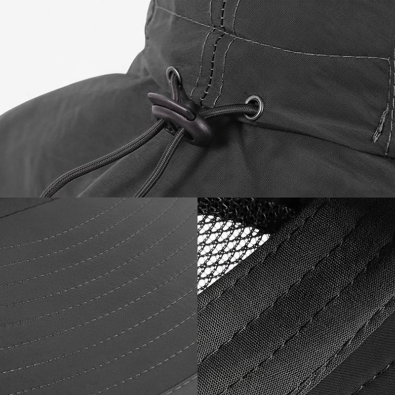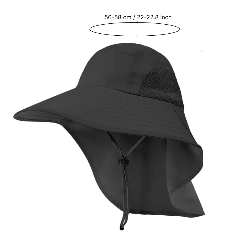 Bredskygget stof hjælper med at blokere stærke solstråler og undgå forbrændinger. Den forlængede flap giver ekstra dækning til din nakke og ører.