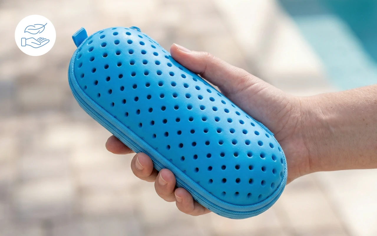 Ikke mere roden rundt efter svømmebriller i min rodede taske. Dette etui holder dem samlet, og nu tørrer de også hurtigere.