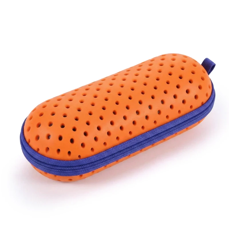 Ridsede linser gør svømning sværere og mindre sjovt. Threos smarte etui beskytter brillerne mod stød eller støv, uanset hvor du er. Lufthuller lader fugten slippe ud, hvilket forhindrer mug og ubehagelig lugt.