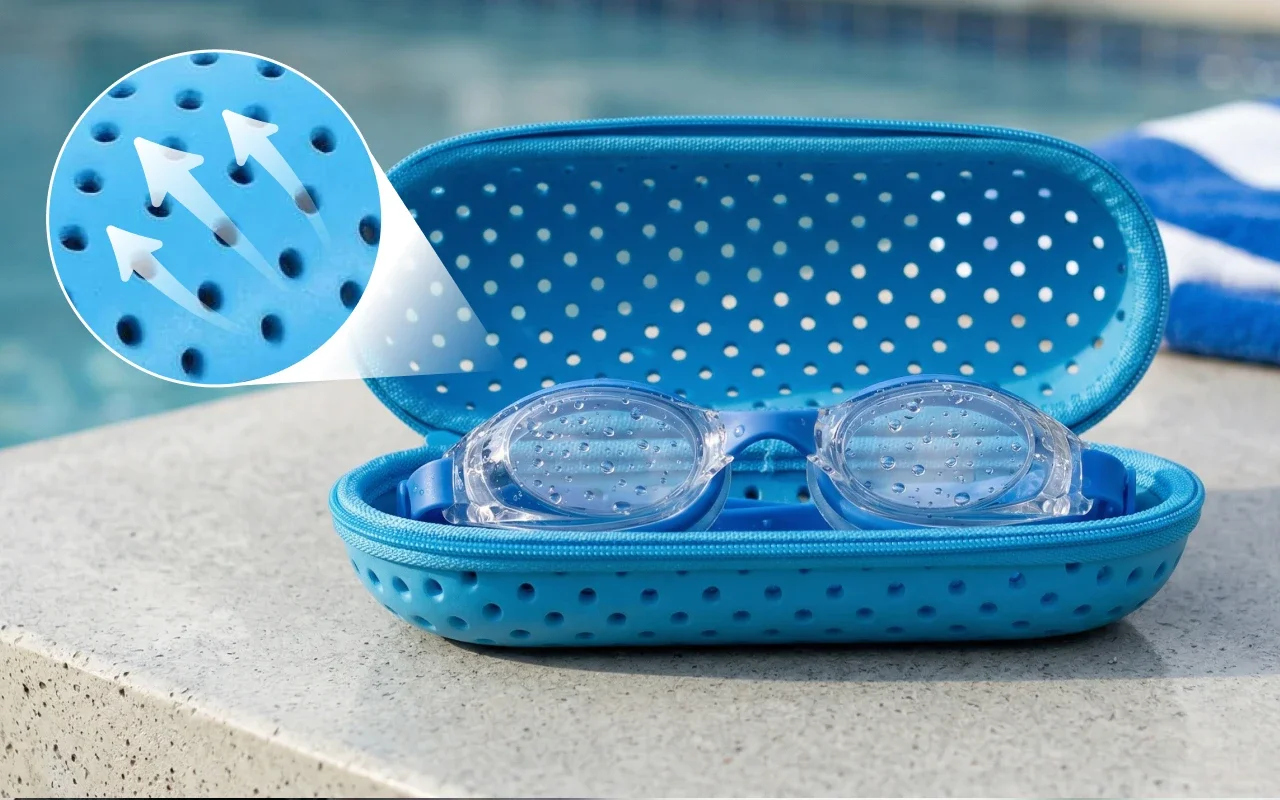 Åndbare huller lader luften cirkulere, så linserne tørrer hurtigt. Denne funktion holder dit udstyr frisk og klar til næste svømmetur.