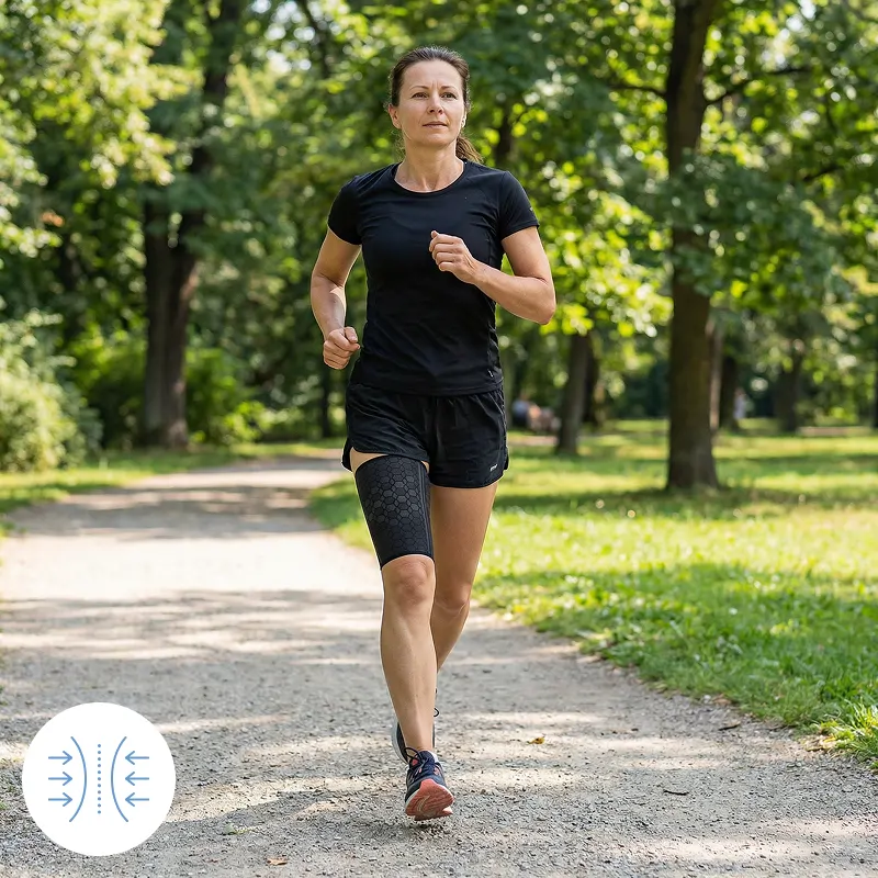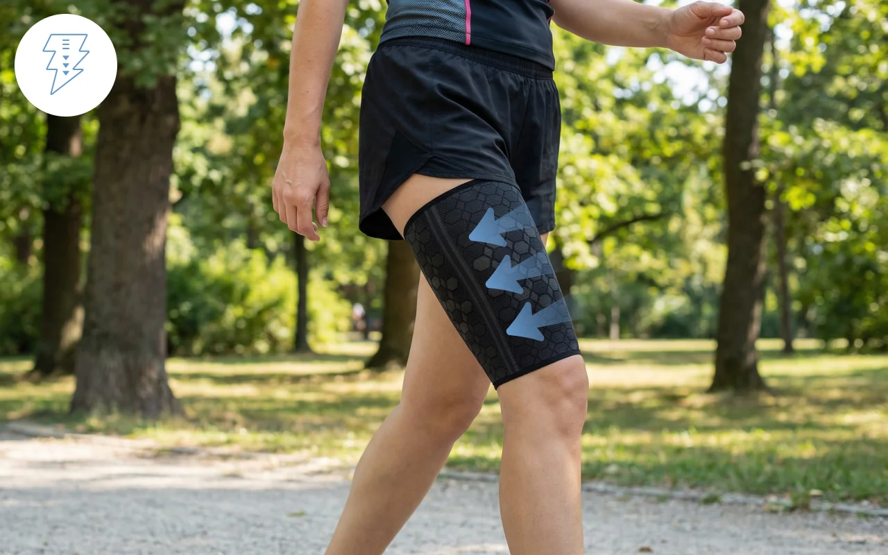 Jeg er postbud og går hele dagen. Dette sleeve holder mit øverste lår roligt og støttet. Når jeg kommer hjem, halter jeg ikke længere.