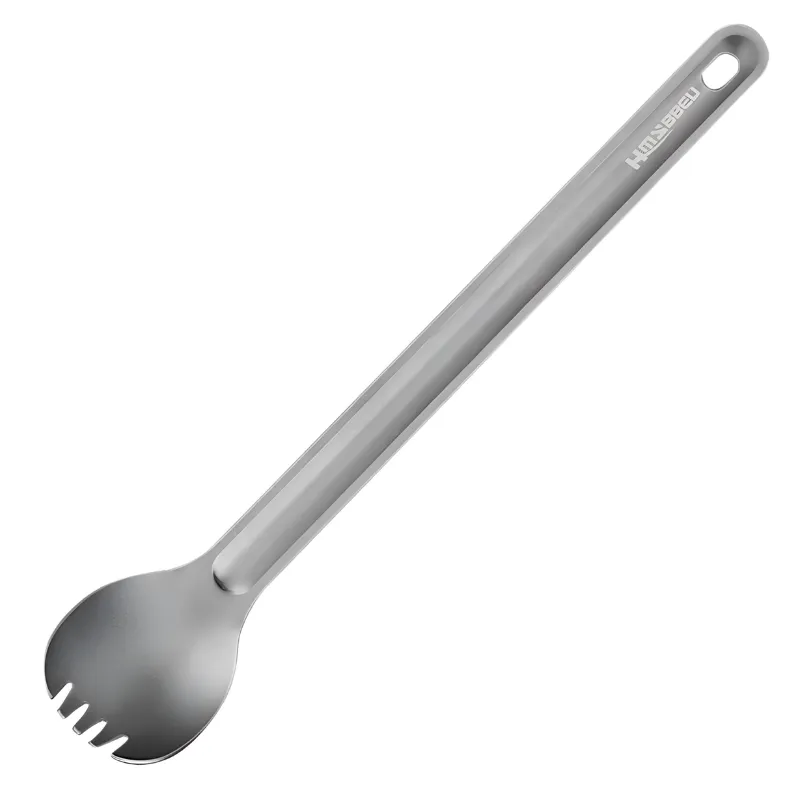 Aldrig mere bøvl med at få maden op af dybe beholdere. Threo Titanium Spork holder måltider enkle og rene udendørs eller derhjemme. Det lette design tynger aldrig din taske ned på rejser. Dette robuste redskab ruster eller bøjer ikke og holder i årevis.