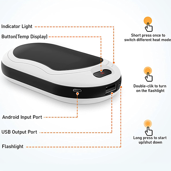 Vores enhed er let og kompakt, hvilket gør det muligt at have den i dine overtøjslommer eller handsker. Der er tre justerbare temperaturer (40°C/50°C/60°C), som kan ses på skærmen. Med opvarmning på begge sider når vores håndvarmer den ønskede temperatur på få sekunder.