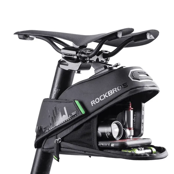 Denne cykeltaske er fantastisk! Den rummer nemt mine nøgler, pung og en mini pumpe. Det bedste er, at den forbliver tør, selv i kraftig regn. Let at fastgøre, og den føles sikker på ujævne ture.