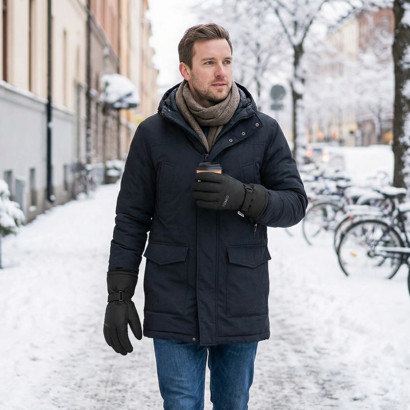 Regn eller sne kan ikke trænge igennem det stærke ydre lag. Flere lag holder hænderne tørre og blokerer for isnende vind.