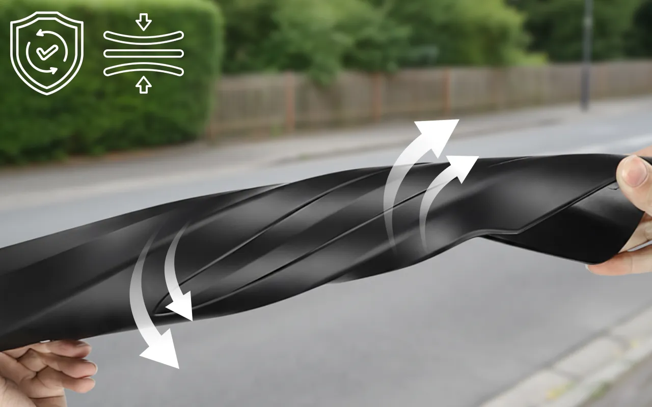 Det holdbare materiale modstår ridser og revner på ujævnt terræn. Det tåler hyppig brug under barske forhold og sikrer beskyttelse i flere cykelsæsoner.