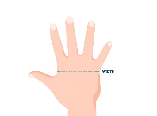 - 1. Stræk målebåndet ud over den bredeste del af din håndflade.