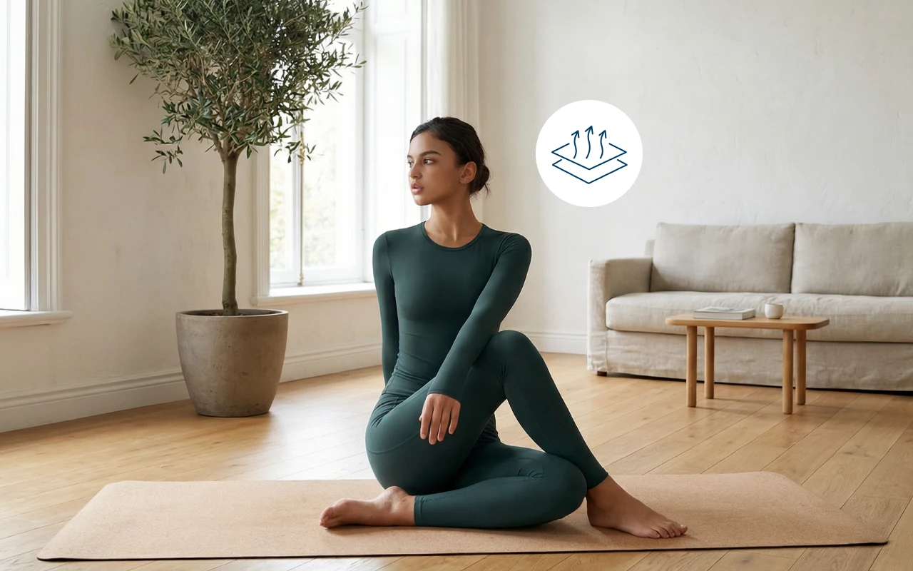 Høj elasticitet tillader alle drej og vendinger uden begrænsninger. Dine bevægelser forbliver glatte og naturlige fra start til slut.