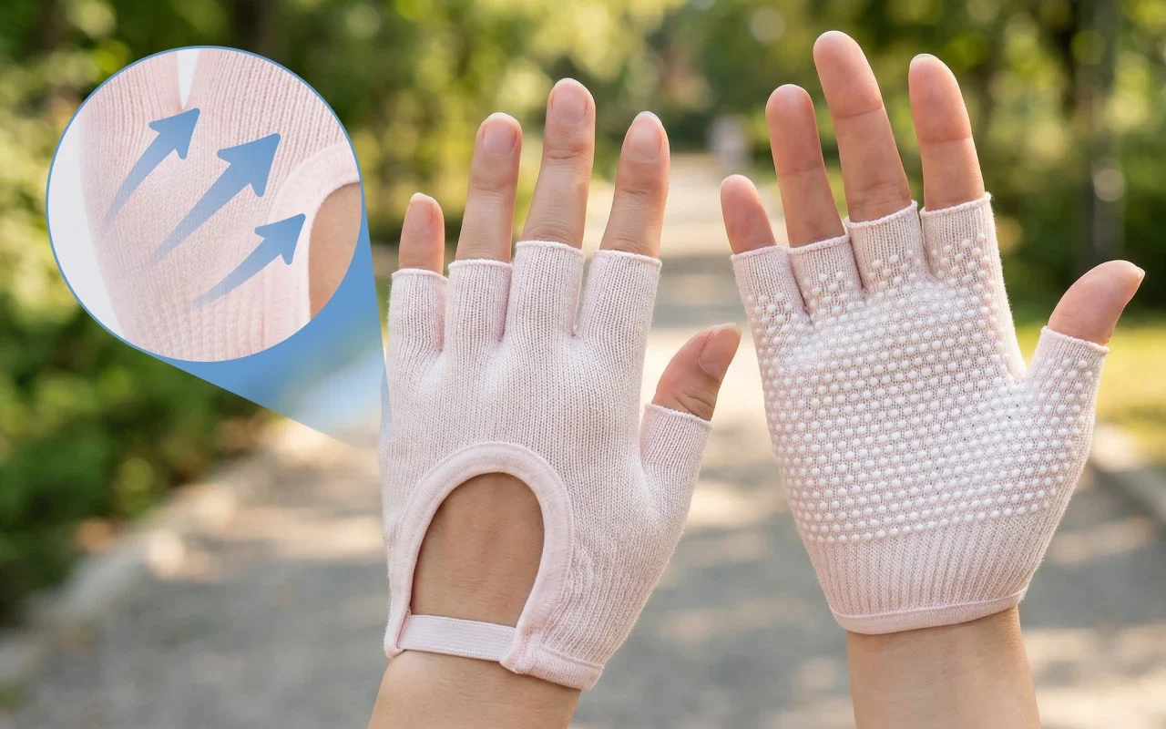 Hænderne føles altid sikre på træningsudstyr eller yogamåtter. Behageligt materiale lader huden ånde, så du kan fokusere helt. Ingen glid eller ubehag forstyrrer dine yndlingsaktiviteter. Føl dig stabil, kølig og støttet i hver bevægelse.