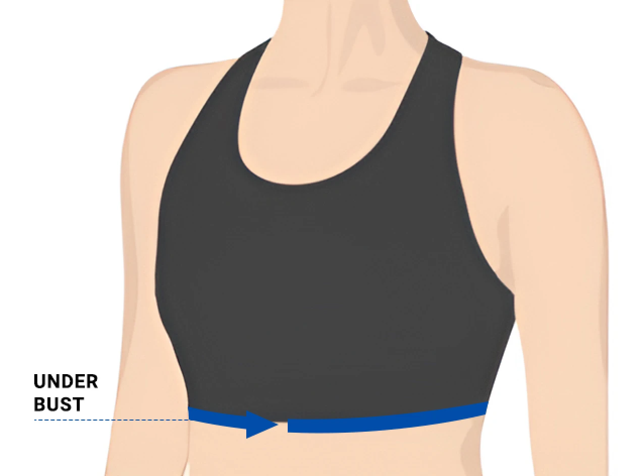 - 1. Vikl målebåndet rundt om din brystkasse, direkte og jævnt under barmen.